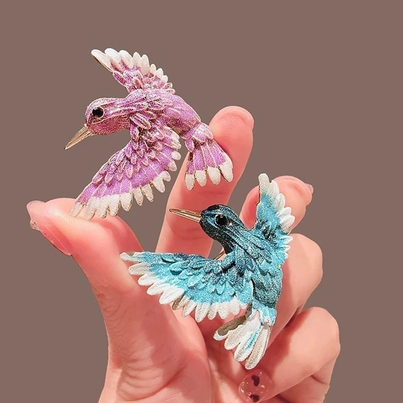 Vintage Blue Hummingbird Brooch Pins for Women Metal Bird Pin Ladies Party Dress Clothes Brooches Jewelry Accessories Gifts